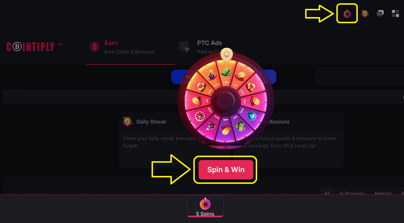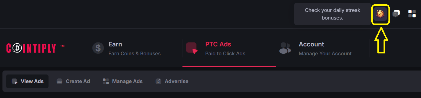 • DAILY STREAK BONUS (bónus de sequência diária): Ao final de cada dia, entra nesta secção para ver se ganhaste algum bónus adicional por todas as tarefas e cliques que fizeste durante o dia.